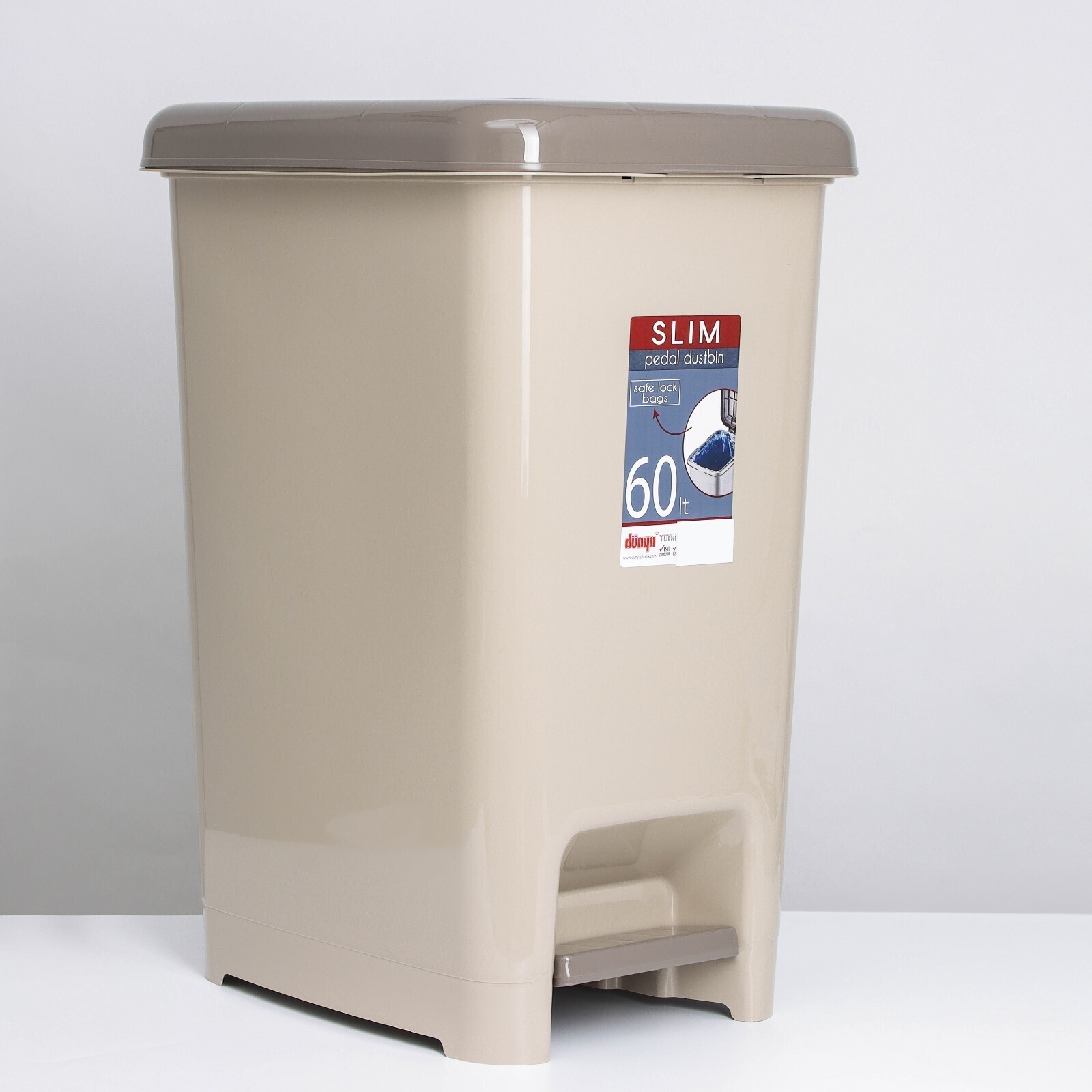 Ведро для мусора с педалью DDSTYLE «Слим», 60 л, цвет капучино