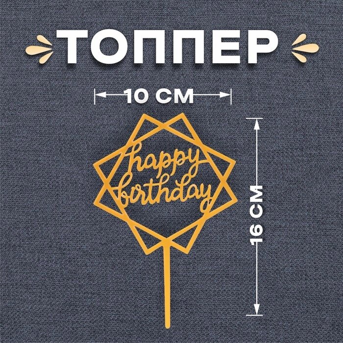 Топпер "С днём рождения", цвет золотой