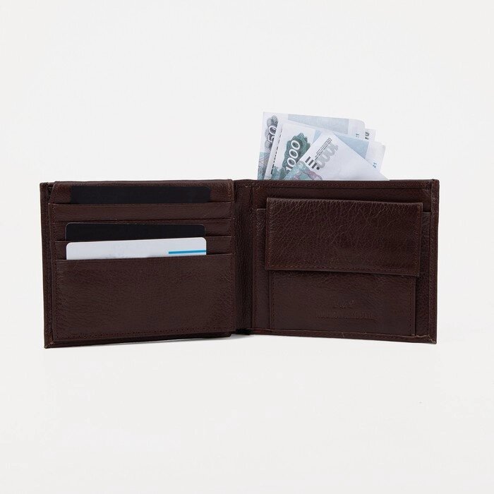 Портмоне мужское, 2 отдела, цвет коричневый