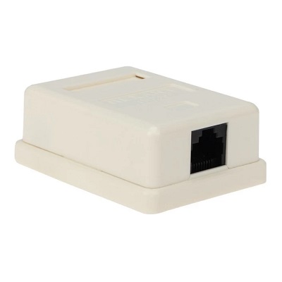 Устройство оснащено гнездом RJ- 45 категории 5е под разъем 8P8C (8 посадочных мест и 8 контактов). Кабель фиксируется с помощью зажимных контактов.