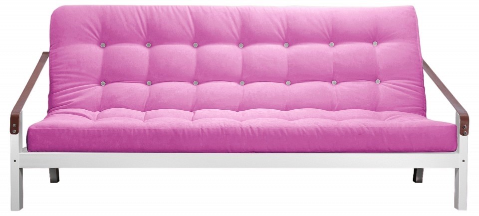 Длина спального места, мм: 2000, Ширина спального места, мм: 1350, Количество сидячих мест: 3, Механизм трансформации: книжка, Цвет обивки: розовый, Материал обивки: вельвет, Материал корпуса: массив, Тип поверхности корпуса: матовый, Цвет корпуса: белый, Основной цвет мебели: розовый