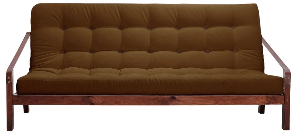 Длина спального места, мм: 2000, Ширина спального места, мм: 1350, Количество сидячих мест: 3, Механизм трансформации: книжка, Цвет обивки: коричневый, Материал обивки: вельвет, Материал корпуса: массив, Тип поверхности корпуса: матовый, Цвет корпуса: сосна вишня, Основной цвет мебели: коричневый