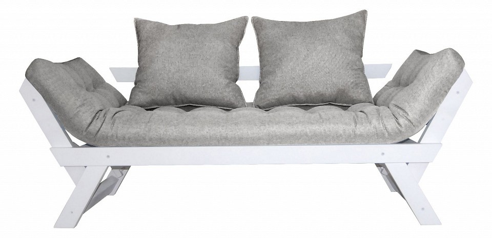 Длина спального места, мм: 1980, Ширина спального места, мм: 700, Количество сидячих мест: 2, Цвет обивки: серый grey, Материал обивки: рогожка, Материал корпуса: массив, Тип поверхности корпуса: матовый, Цвет корпуса: белая эмаль, Основной цвет мебели: серый