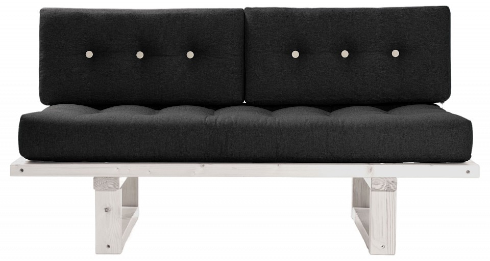 Длина спального места, мм: 1400, Ширина спального места, мм: 650, Количество сидячих мест: 2, Цвет обивки: черный, Материал обивки: рогожка, Материал корпуса: массив, Тип поверхности корпуса: матовый, Цвет корпуса: белый, Основной цвет мебели: черный