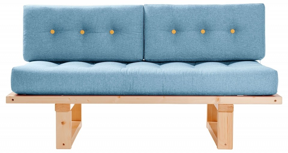 Длина спального места, мм: 1400, Ширина спального места, мм: 650, Количество сидячих мест: 2, Цвет обивки: голубой, Материал обивки: рогожка, Материал корпуса: массив, Тип поверхности корпуса: матовый, Цвет корпуса: сосна, Основной цвет мебели: голубой