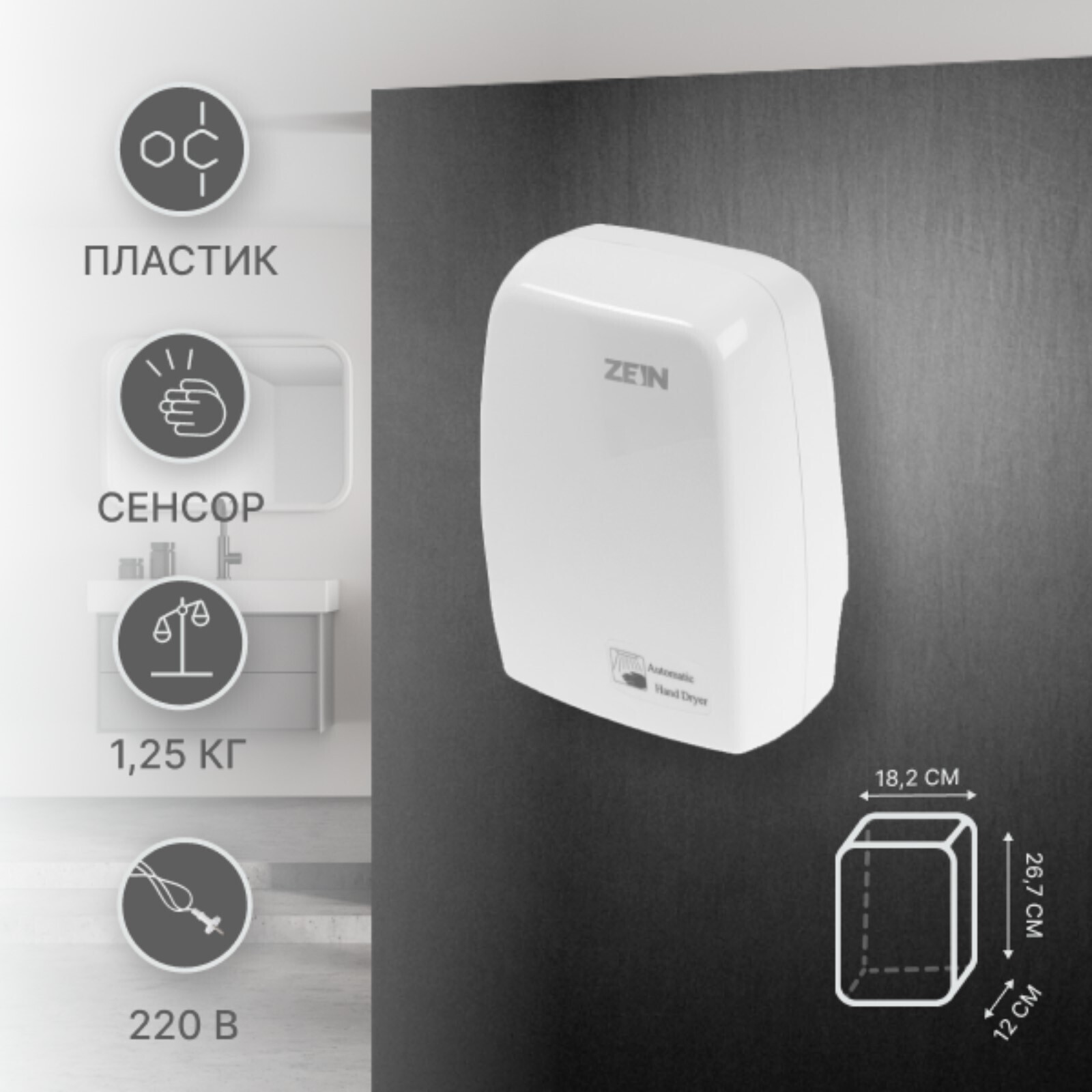Сушилка для рук ZEIN HD227 White, 1 кВт, 170х100х260 мм, белая