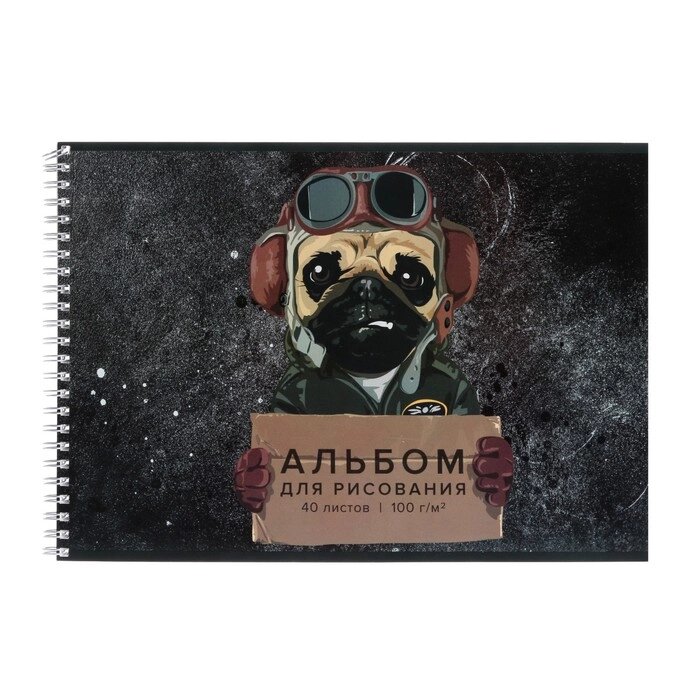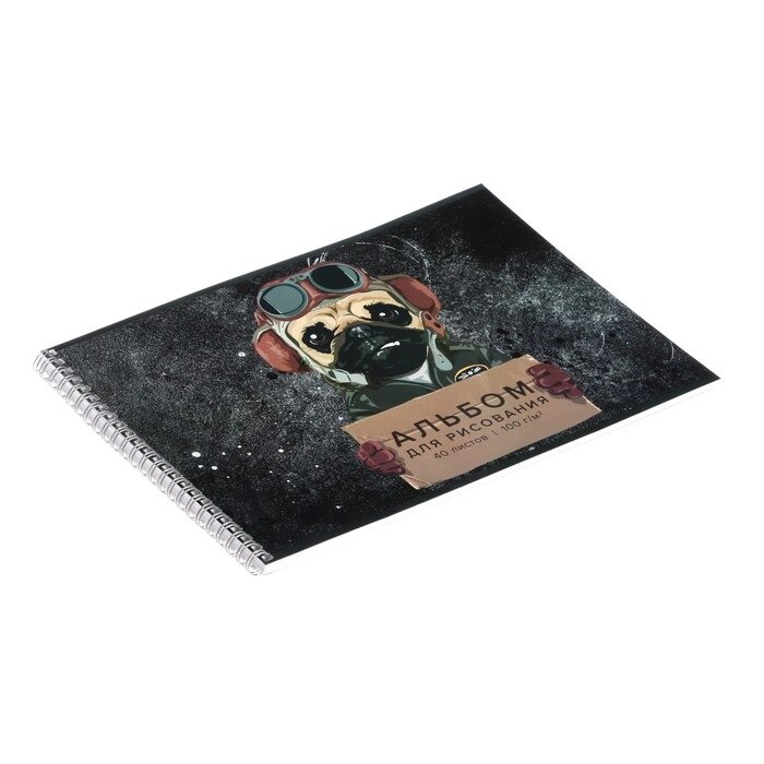 Альбом для рисования А4, 40 листов на гребне "Пес летчик", обложка мелованный картон, металлическая плёнка,