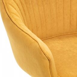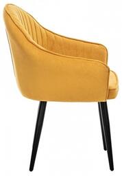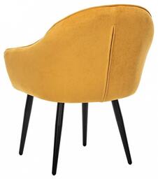 Цвет обивки: горчица, Материал обивки: велюр, Наполнитель: пенополиуретан, Материал корпуса: металл, фанера, Тип поверхности корпуса: матовый, Художественное описание товара: Комфортное, роскошное, широкое – мягкое кресло Leset Вайд на березовом каркасе в виде ракушки заботливо примет вас в «объятья». Окутает аурой уюта, тепла и спокойствия. Его эксклюзивный дизайн станет «жемчужиной» любой комнаты, будь то кухня, кабинет или гостиная. Идеально смотрится в тандеме с обеденной зоной, туалетным столиком или письменным столом. Конструкция кресла Leset Вайд вполне отвечает принципам практичности и эргономичности: гладкая велюровая обивка без эффекта «письма» легко очищается от пятен и не позволяет домашним питомцам зацепиться когтями. Прочные металлические ножки выдерживают вес до 120 кг, а сборка стула занимает всего 5 минут., Дополнительные параметры: Размер сиденья - 490x500 мм, толщина сиденья - 60 мм, высота спинки - 400 мм, высота подлокотника от пола - 700 мм, ширина подлокотника - 70 мм, расстояние между ножками - 430x450 мм., Цвет корпуса: черный, Основной цвет мебели: оранжевый