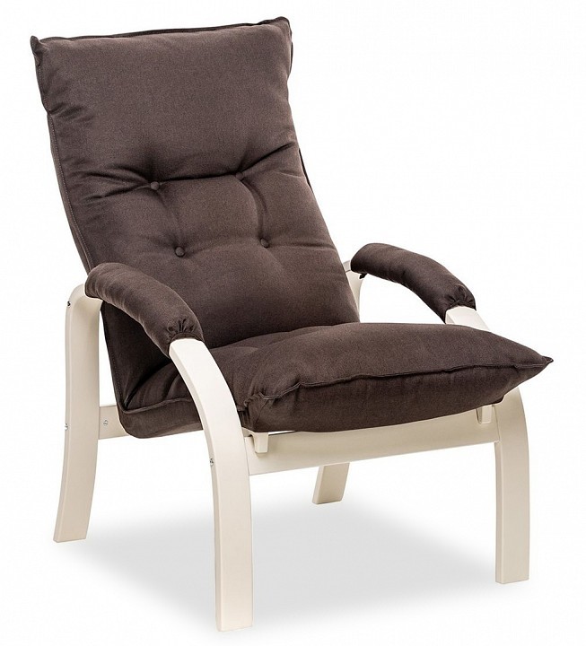 Цвет обивки: коричневый Malmo 28, Материал обивки: рогожка, Наполнитель: ППУ, холкон, Материал покрытия корпуса: шпон березовый гнутоклееный, Материал корпуса: фанера ФСФ, Тип поверхности корпуса: полуматовый, Художественное описание товара: Мягкое кресло для отдыха дома и на даче Левада сделает комфортным интерьер комнаты модерн или хай-тек. Стильные кресла трансформеры из гнутоклееной коллекции мягкой мебели Leset имеют характерный силуэт, функциональны и компактны, поэтому популярны. Кресло оснащено механизмом гребенка, за счет чего одним движением спинка переключается в 2 положения: сидя или полулежа. Современный дизайн, изящный деревянный каркас под итальянским лаком, велюровый чехол, наполнитель из эластичного пенополиуретана. Накладки на подлокотниках снимаются для чистки, приспинная подушка декорирована пуговицами., Цвет корпуса: слоновая кость, Основной цвет мебели: коричневый