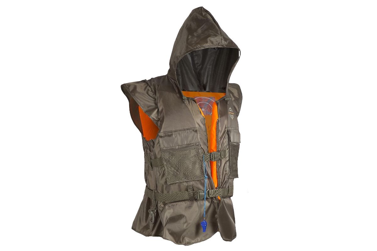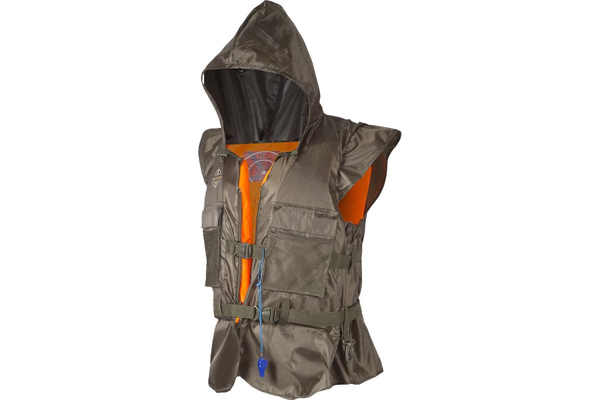 Предназначен для рыбаков и людей, чей род занятий связан с работами на воде. Удобно крепится поверх одежды, подгоняется по размеру стропами с пряжками фастекс.