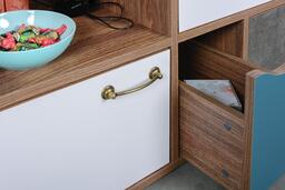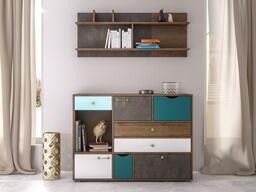 Количество секций для хранения: 4, Материал фасада: ЛДСП Е1, Материал корпуса: ЛДСП Е1, Тип поверхности корпуса: матовый, Художественное описание товара: Распашные двери на четырехшарнирных петлях. Выдвижные ящики - фолдинги на шариковых направляющих., Цвет корпуса: морское дерево винтаж, Цвет фасада: белый премиум, бензин, камень темный, мята, Основной цвет мебели: белый