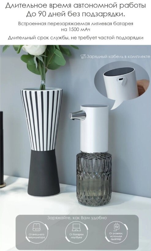 Бесконтактная перезаряжаемая насадка - дозатор для жидкого мыла, геля, антисептика Mockingbird Automatic Gel Soap