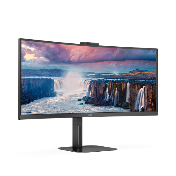 34" AOC CU34V5CW Curved 3440x1440 100Гц VA LED 16:9 4(1)ms HDMI DP USB-C/4xUSB3.2 20M:1 3000:1 178/178 300cd WebcamTilt HAS Swivel Speakers 2*5W Black