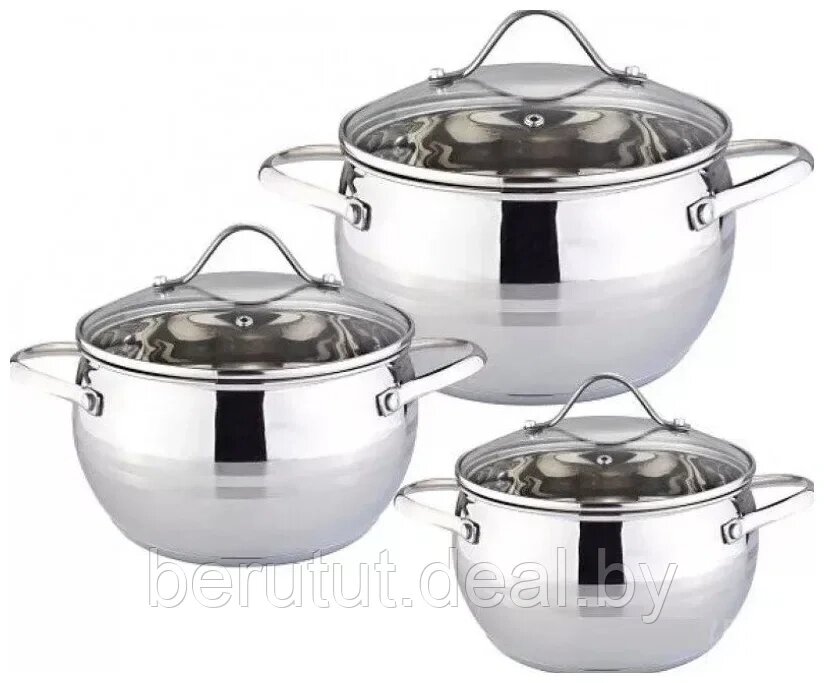 Набор кастрюль из нержавеющей стали Zigen 3 шт. (2. л, 3.1л, 4.1л)