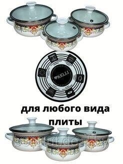 Набор кастрюль Kelli эмалированные для индукции 3 штуки
