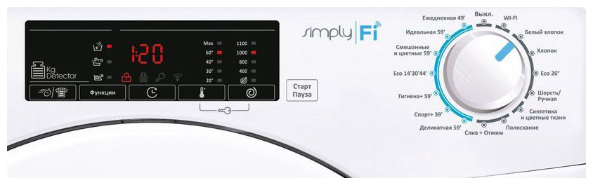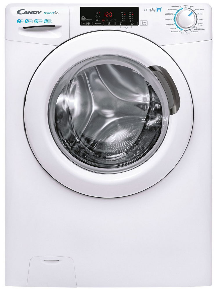 Candy Smart Pro оснащена новой технологией Simply-Fi, открывающей дополнительные и уникальные возможности для взаимодействия со стиральной машиной, такие как: голосовой помощник, советы по улучшению эффективности и удаленное управление по Wi-Fi, что делает стирку еще более простой и удобной.