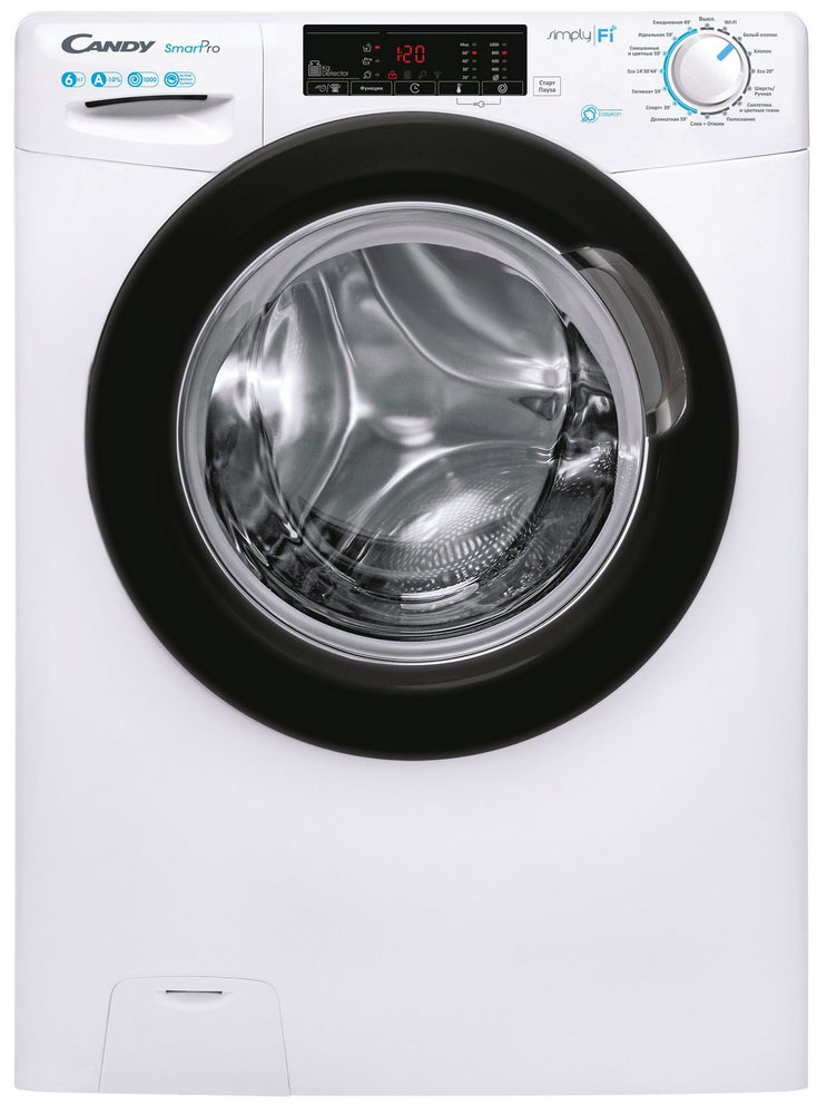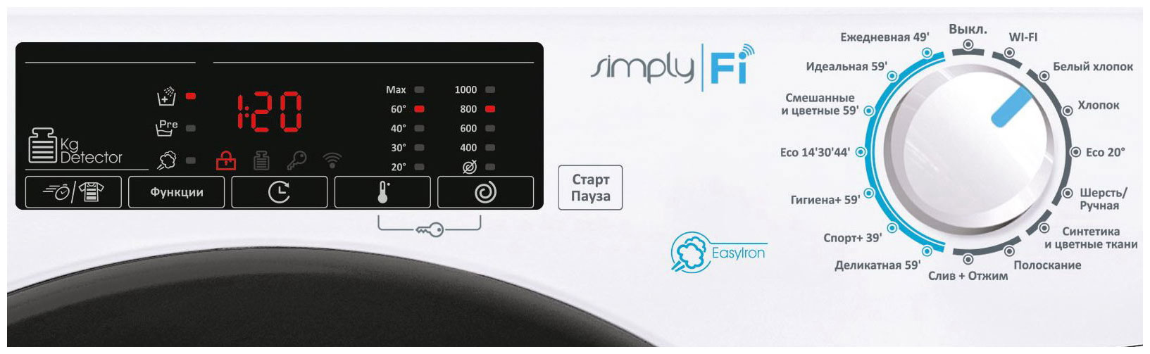 Candy Smart Pro оснащена новой технологией Simply-Fi, открывающей дополнительные и уникальные возможности для взаимодействия со стиральной машиной, такие как: голосовой помощник, советы по улучшению эффективности и удаленное управление по Wi-Fi, что делает стирку еще более простой и удобной.