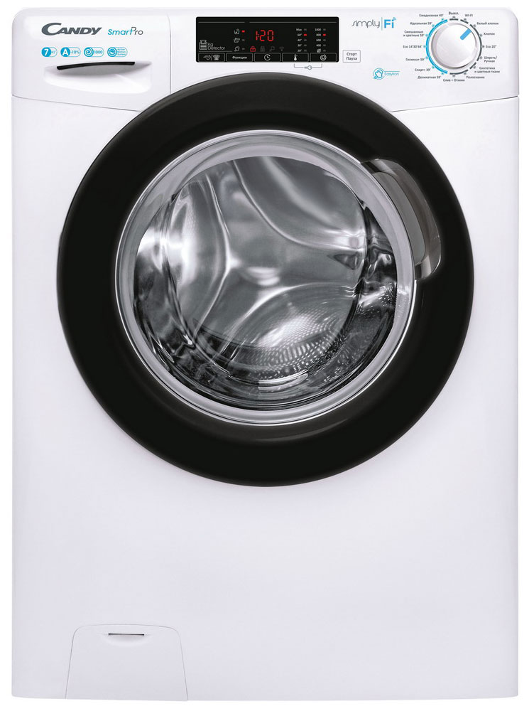 Candy Smart Pro оснащена новой технологией Simply-Fi, открывающей дополнительные и уникальные возможности для взаимодействия со стиральной машиной, такие как: голосовой помощник, советы по улучшению эффективности и удаленное управление по Wi-Fi, что делает стирку еще более простой и удобной.
