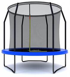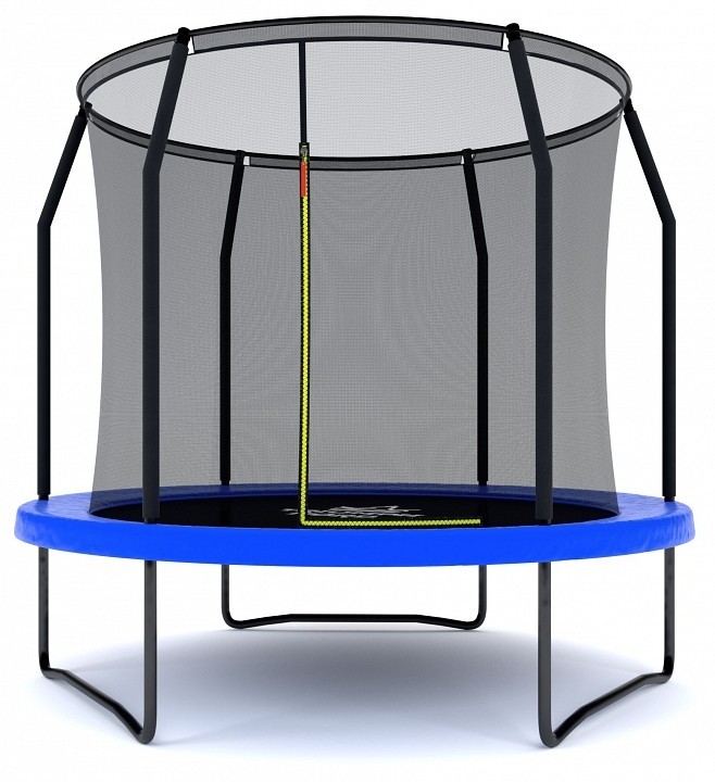 Материал корпуса: высокопрочный нейлон (РЕ), перматрон, сталь, Тип поверхности корпуса: глянцевый, матовый, Дополнительные параметры: высота от пола до основания - 600 мм, высота сетки - 1700 мм, диаметр мата - 2020 мм, колличество пружин - 48 шт, колличество ножек - 3 шт, диаметр ножки - 380 мм, материал мата - перматрон, материал сетки - высокопрочный нейлон (РЕ), материал подушки безопастности - ПВХ, вспененный полимер, Цвет корпуса: синий, черный