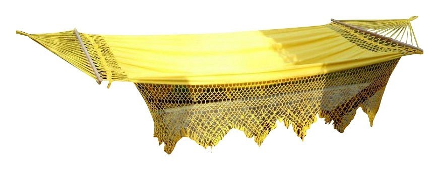 Цвет обивки: желтый, Материал обивки: хлопок, Художественное описание товара: К гамаку подвесному Тулип подходит каркас RIO GRAND (BSF_RIO_GRAND). Каркас приобретается отдельно., Дополнительные параметры: Общая длина - 3800 мм., Основной цвет мебели: желтый