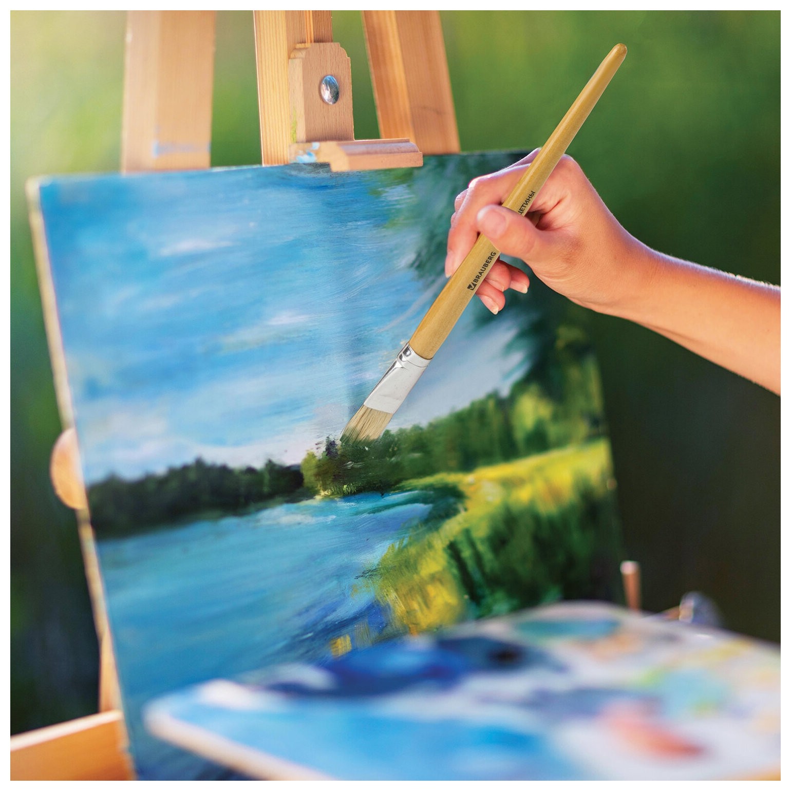 Высококачественная кисть из щетины. Прекрасный выбор для работы с маслом и акрилом. Расщепленный кончик способствует хорошей наполненности кисти и ровному нанесению краски на поверхность.