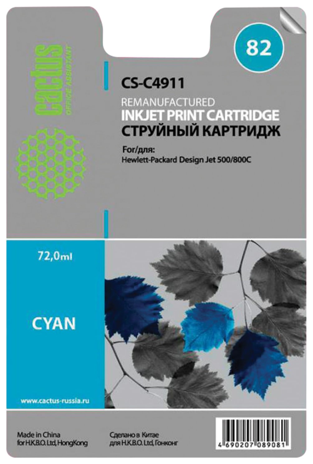 Картридж струйный CACTUS (CS-C4911) для плоттеров HP DesignJet 500/510/800, голубой