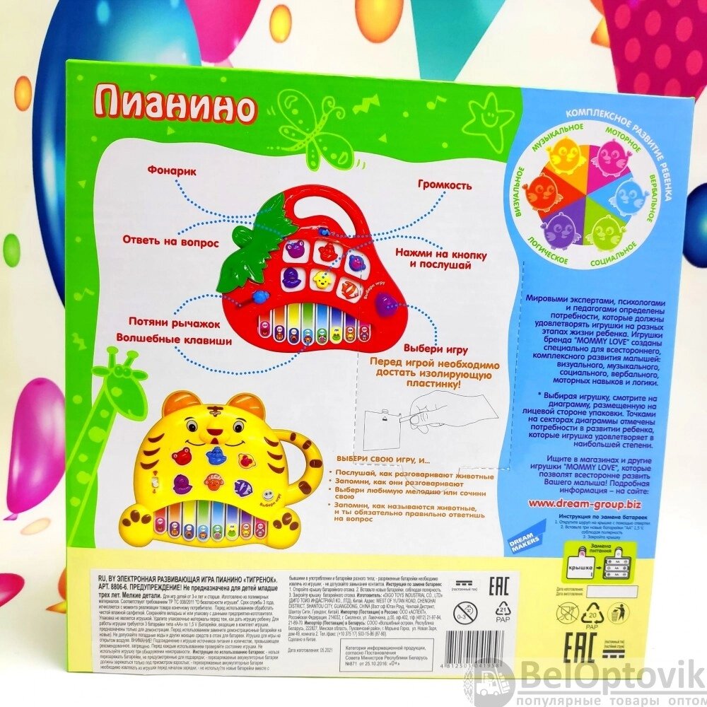 Пианино электронное развивающее Тигренок, звук, свет, игры с животными