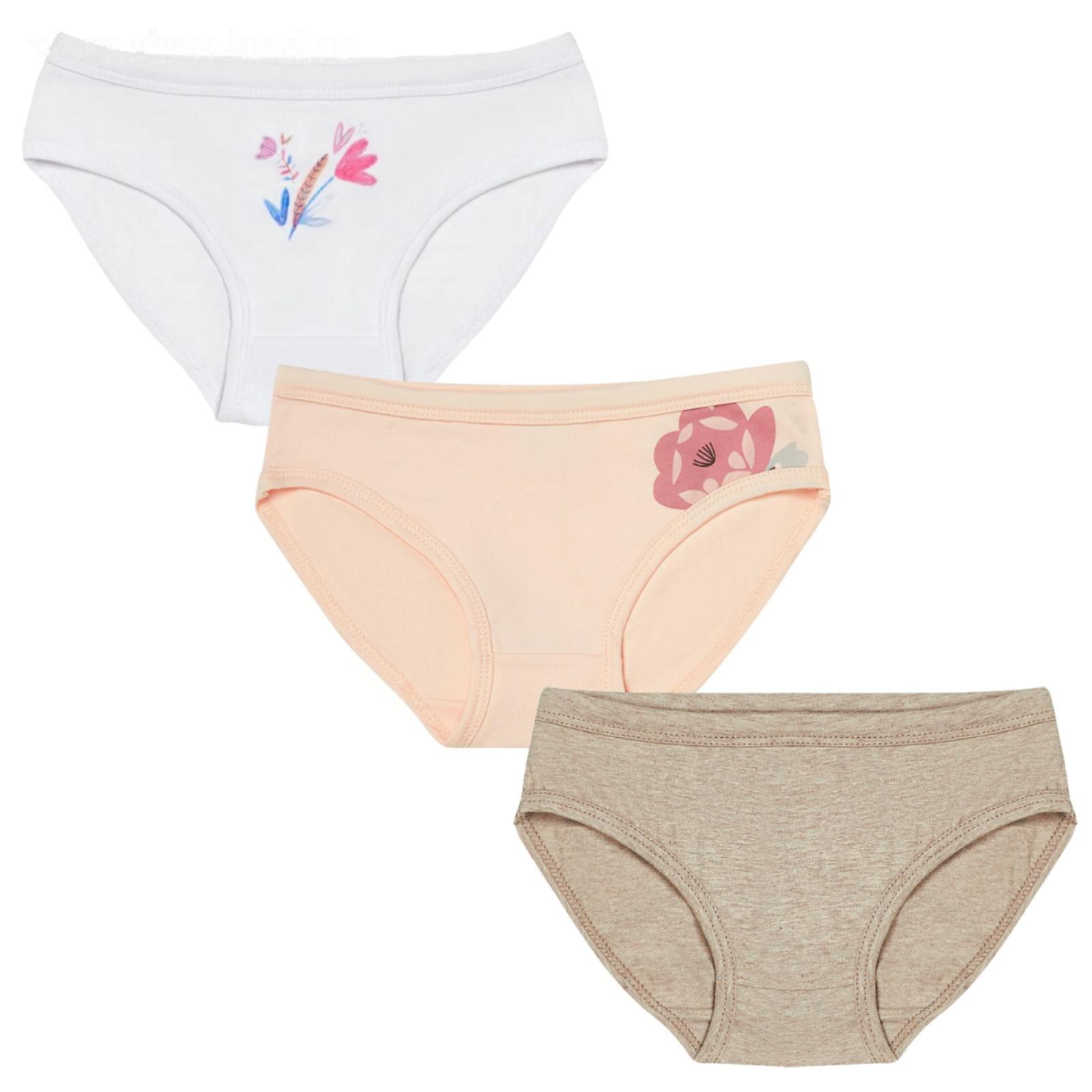 Трусы для девочки, рост 128-134 см, цвет белый, розовый, бежевый меланж, 3 шт в уп.