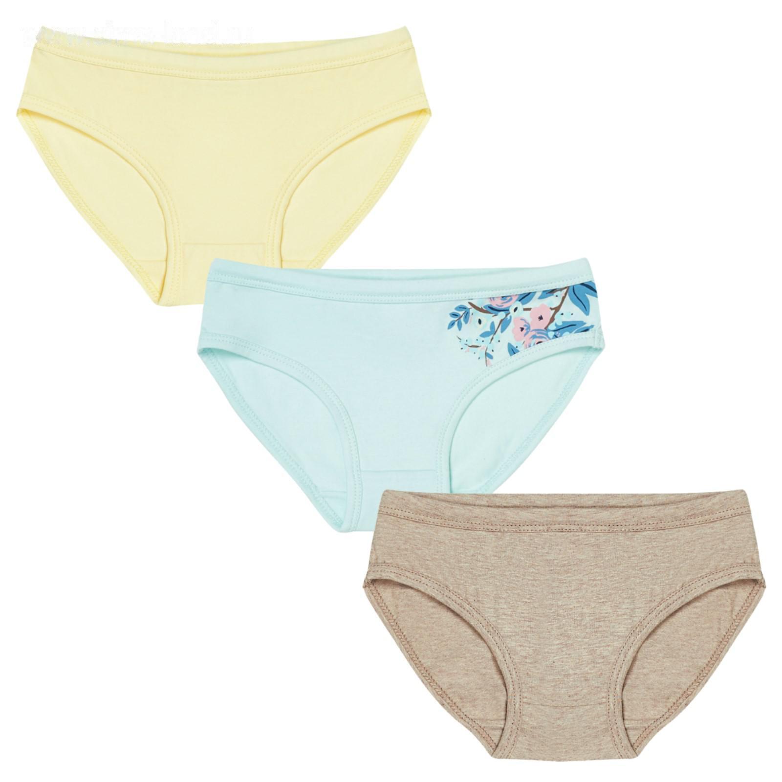 Трусы для девочки, рост 128-134 см, цвет светло-голубой, бежевый меланж, ваниль, 3 шт в уп. 548934