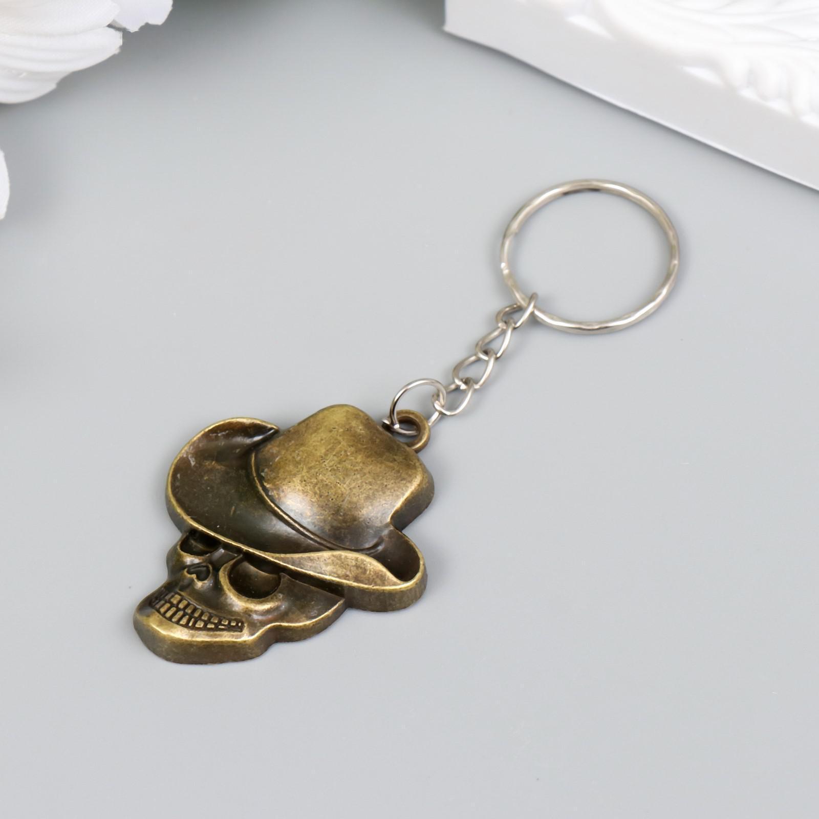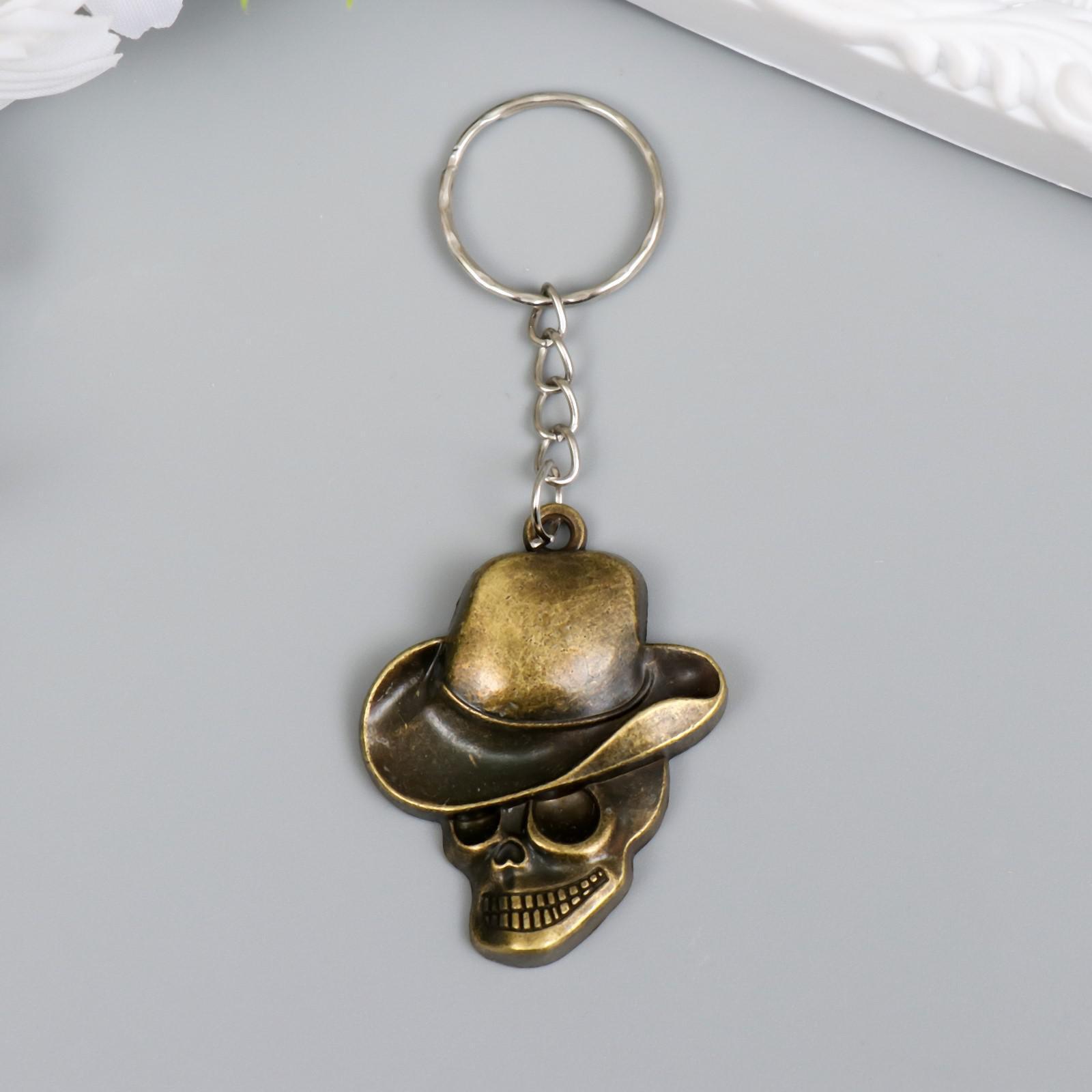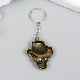Брелок металл "Череп в шляпе" под бронзу 4х3,5 см