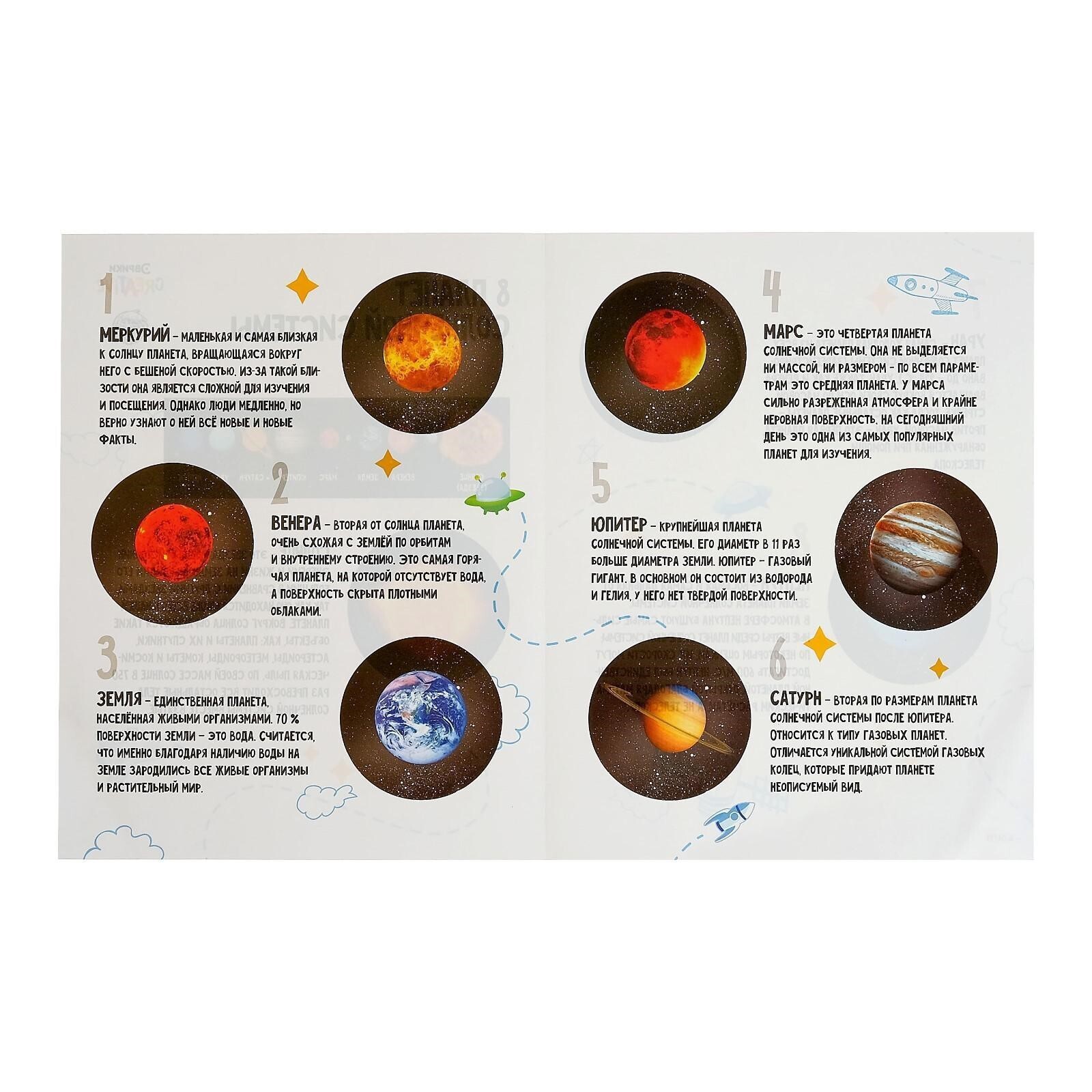 С этим набором ребёнок соберёт модель Солнечной системы по подробной инструкции, изучит расположение и взаимодействие планет в космическом пространстве. Краски и наклейки помогут сделать внешний вид модели реалистичнее. А интересные факты о планетах увлекут ребёнка во время изучения.