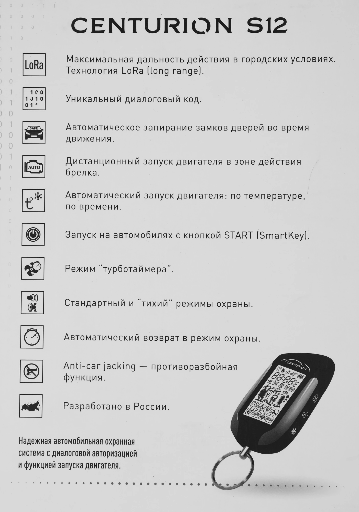 Автосигнализация Centurion S-12 с обратной связью + дистанционный запуск брелок с ЖК дисплеем