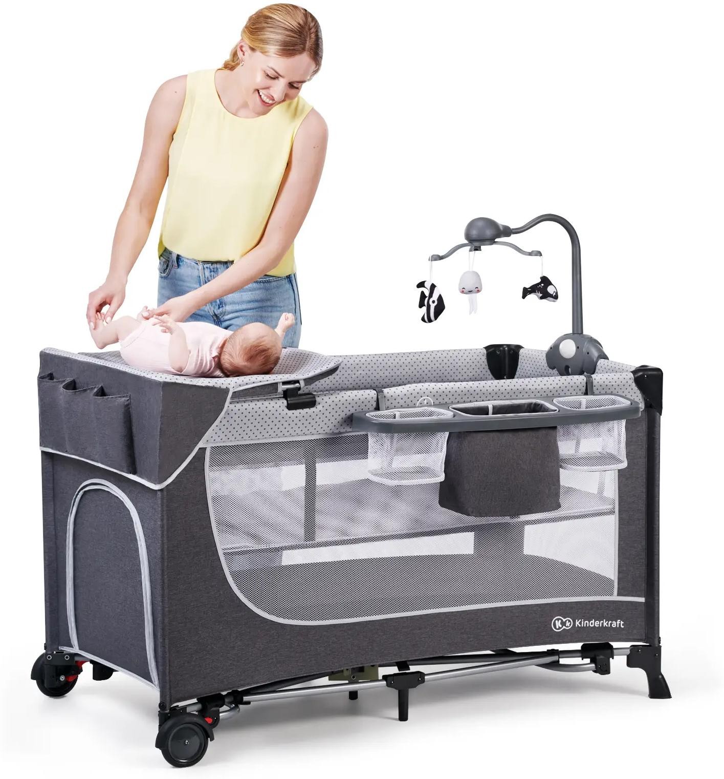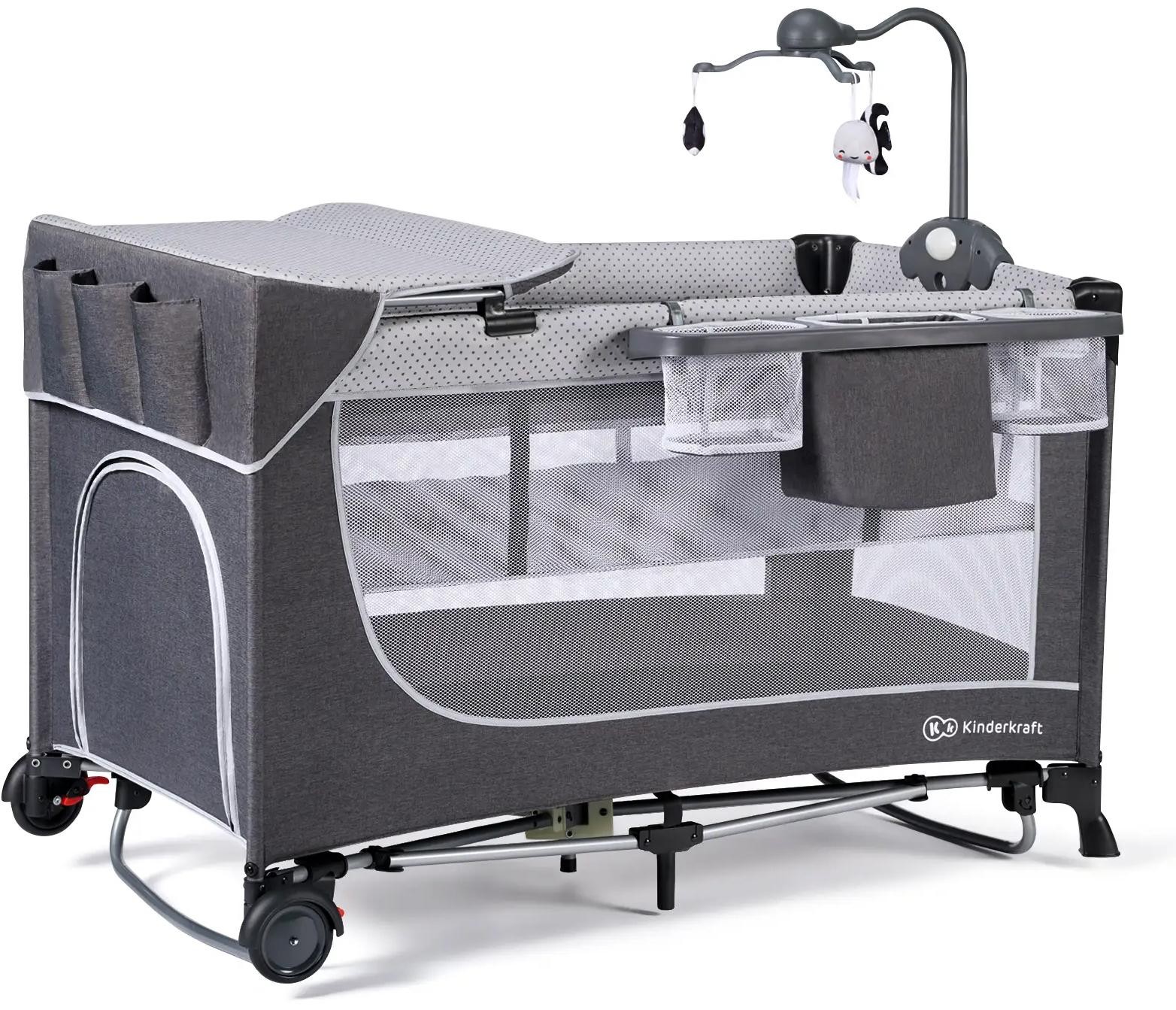 Дитячий манеж Kinderkraft кровать Leody с пеленатором Grey (5902533917952)