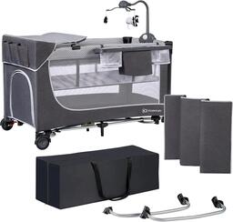 У ліжечка 2-рівневе підвісне дно, тому воно підходить як для новонароджених, так і для старших діток, які починають сідати і вставати на ніжки. Високий рівень дна дозволяє батькам дбати про малюка, не нахиляючись надмірно вниз. У комплекті до ліжечка також йде карусель з іграшками, підсвічуванням та мелодією. Вона сприяє розвитку моторики дитини (спонукаючи до витягування рук), а також розвиває концентрацію уваги та допомагає у розвитку зору та слуху.
