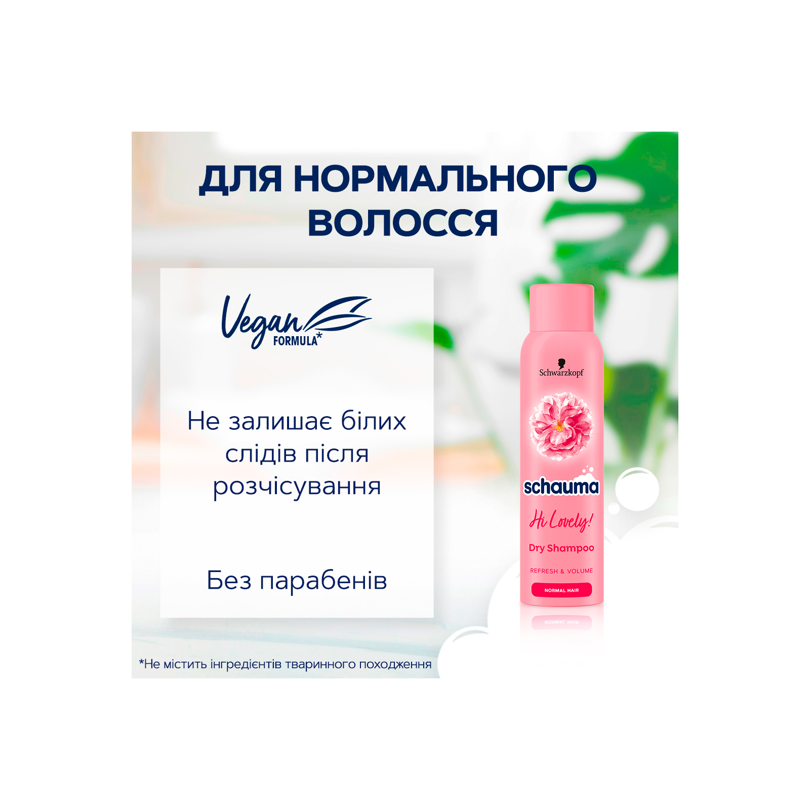 Вітання! Я сухий шампунь Schauma Hi Lovely! , і ось що я зроблю для Вас: надам миттєву свіжість, прекрасний аромат волоссю на весь день і до 24 годин об'єму без видимих слідів після розчісування.