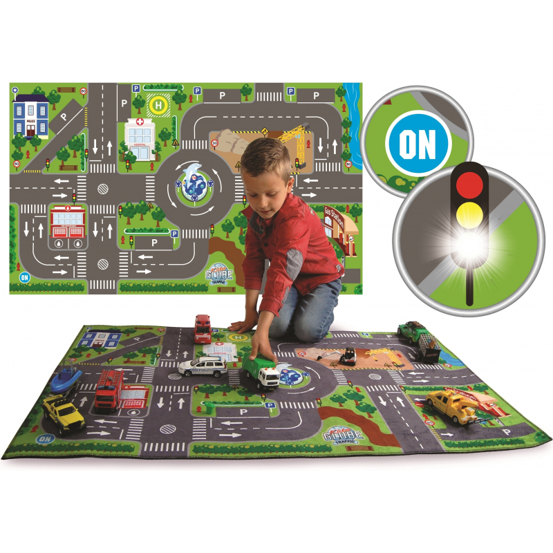 В комплект входит: Дорожный коврик Junior Driver со светофором 2 батарейки CR203 Функции: Дорожный коврик для автомобильных игр Светодиодные светофоры на ковре! Размер ковра 72 х 120 см. Батарейки: 2 x CR2032 (входят в комплект) Рекомендуемый возраст: старше 3 лет