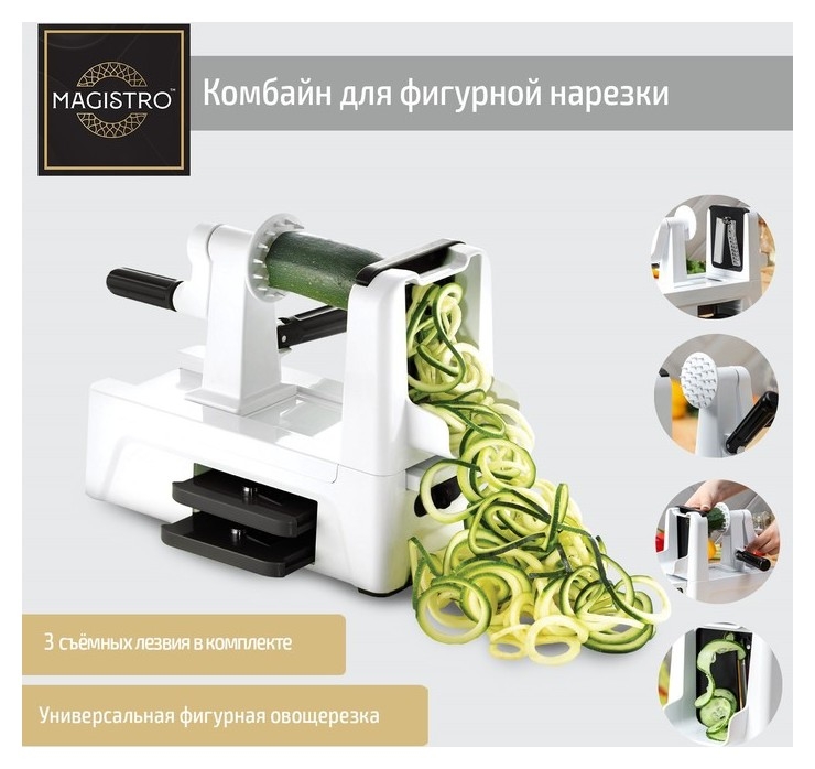 Овощерезка для фигурной нарезки Magistro Vegan Pro, 3 насадки, цвет чёрно-белый