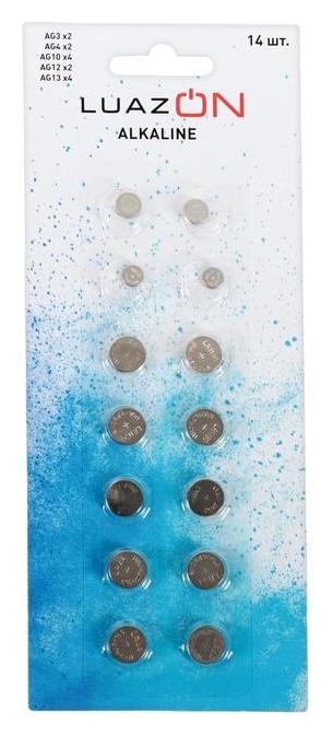 Набор алкалиновых (Щелочных) батареек Luazon Ag3/ag4/ag10/ag12/ag13, 14 шт