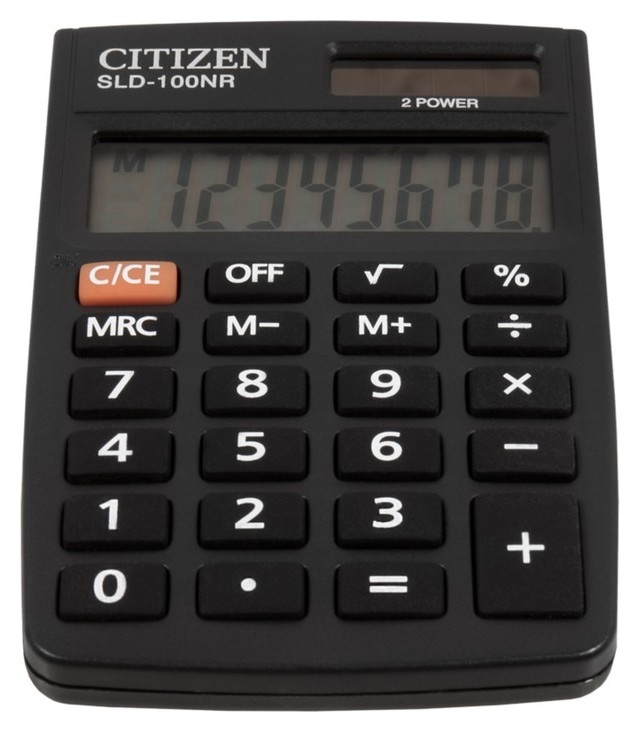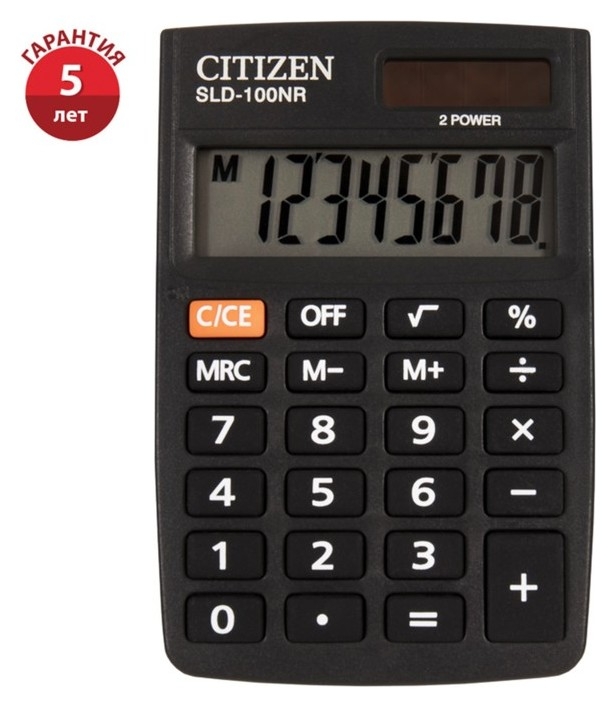 8-ми разрядный карманный калькулятор Citizen SLD-100NR предназначен для выполнения арифметических операций.