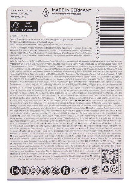 Батарейка алкалиновая Varta MAX Tech AAA набор 2 шт