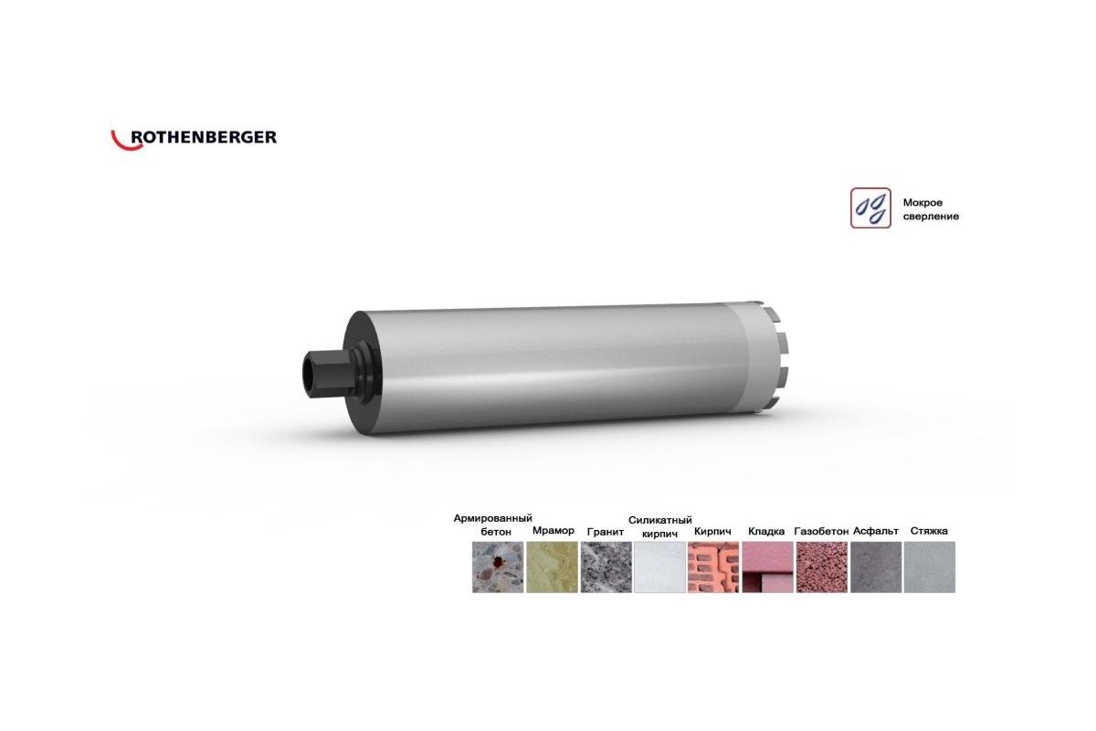 Используется с дрелями алмазного сверления ROTHENBERGER и др. производителями. Для мокрого сверления.