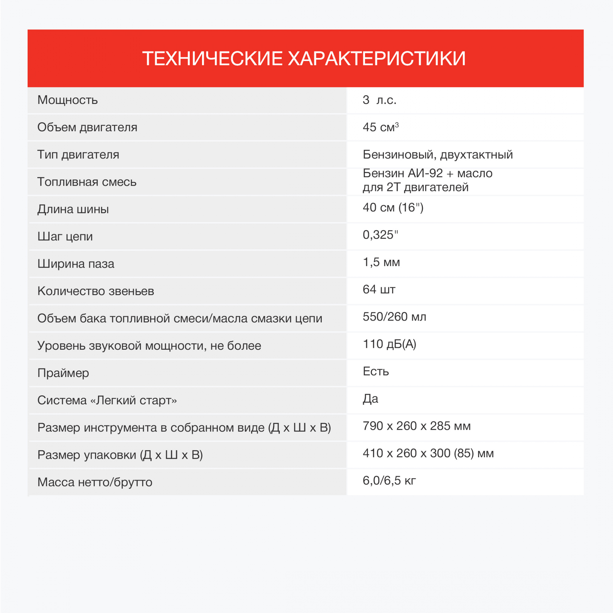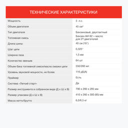 • Рабочий объем двигателя 45 см3