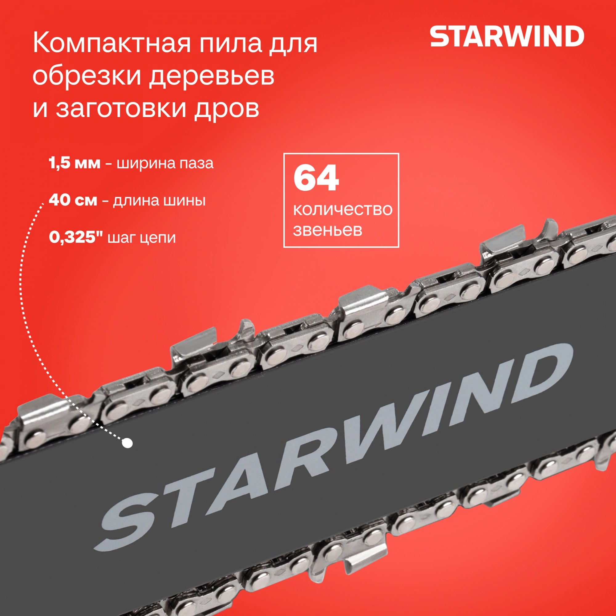 • Ширина паза цепи 1.5 мм