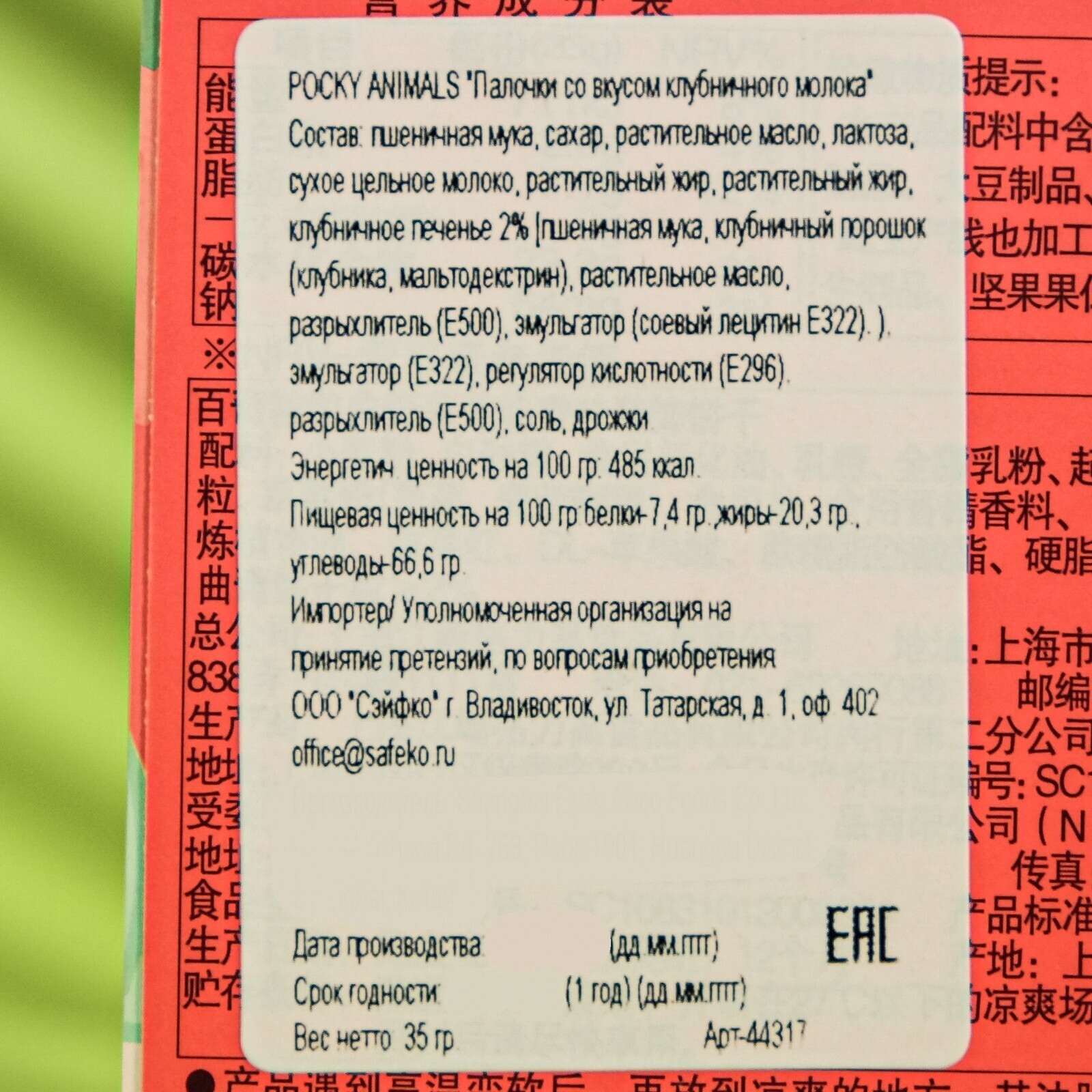 Палочки поки GLICO ANIMALS со вкусом клубничного молока, 35 г
