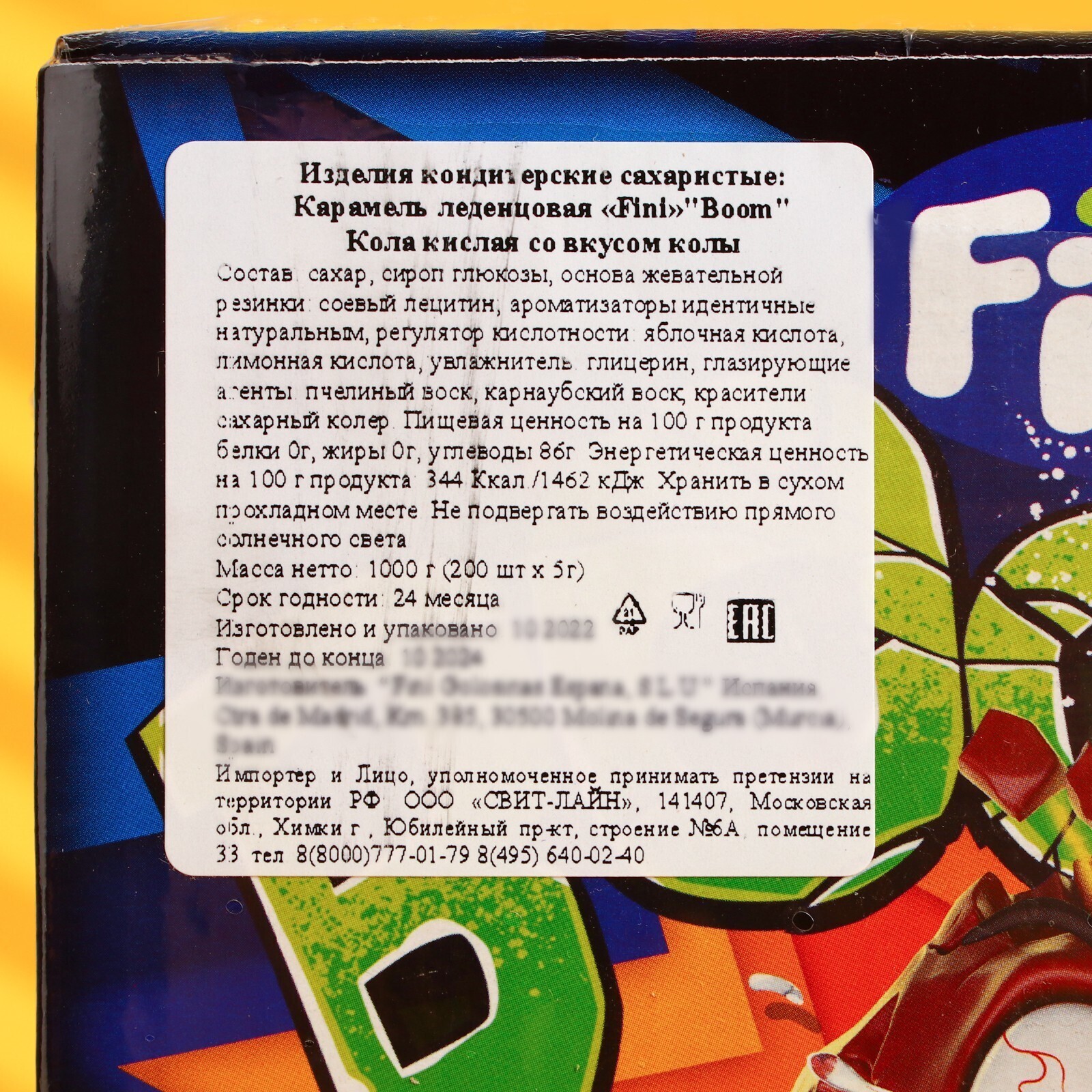 Карамель леденцовая FINI "Boom" кола кислая, 5 г