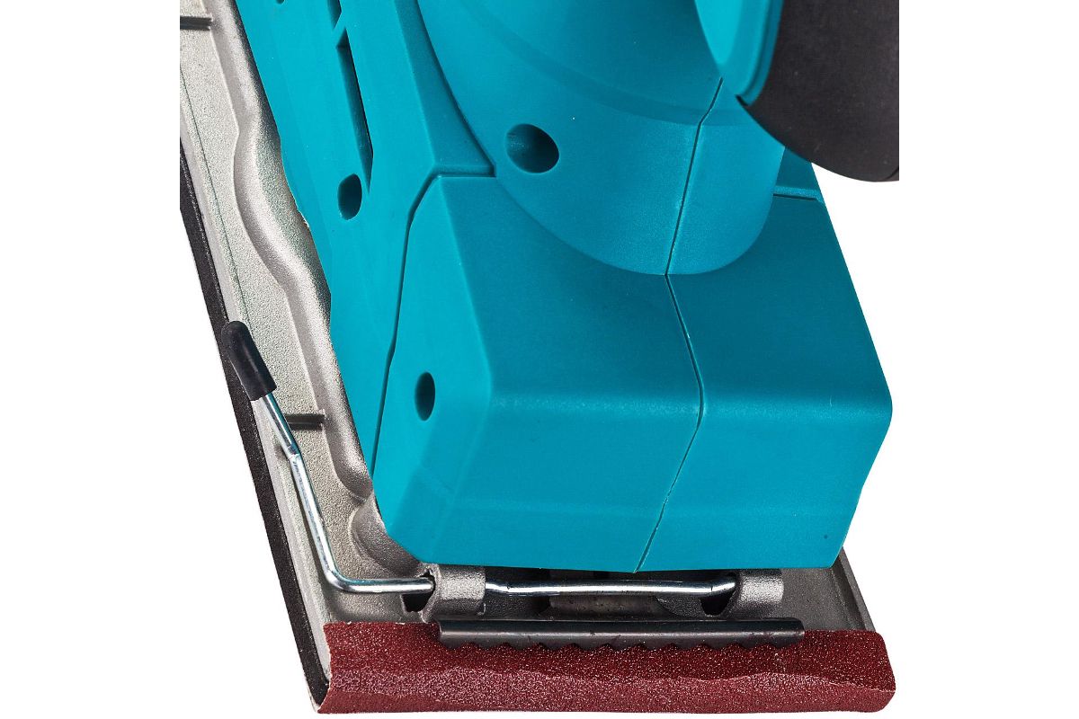 - Быструю и удобную замену шлифовальных листов обеспечивает крепление зажимом к массивной литой металлической подошве;