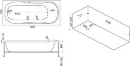 Размер ванны (ДхШхВ) - 160x70x56-63 см