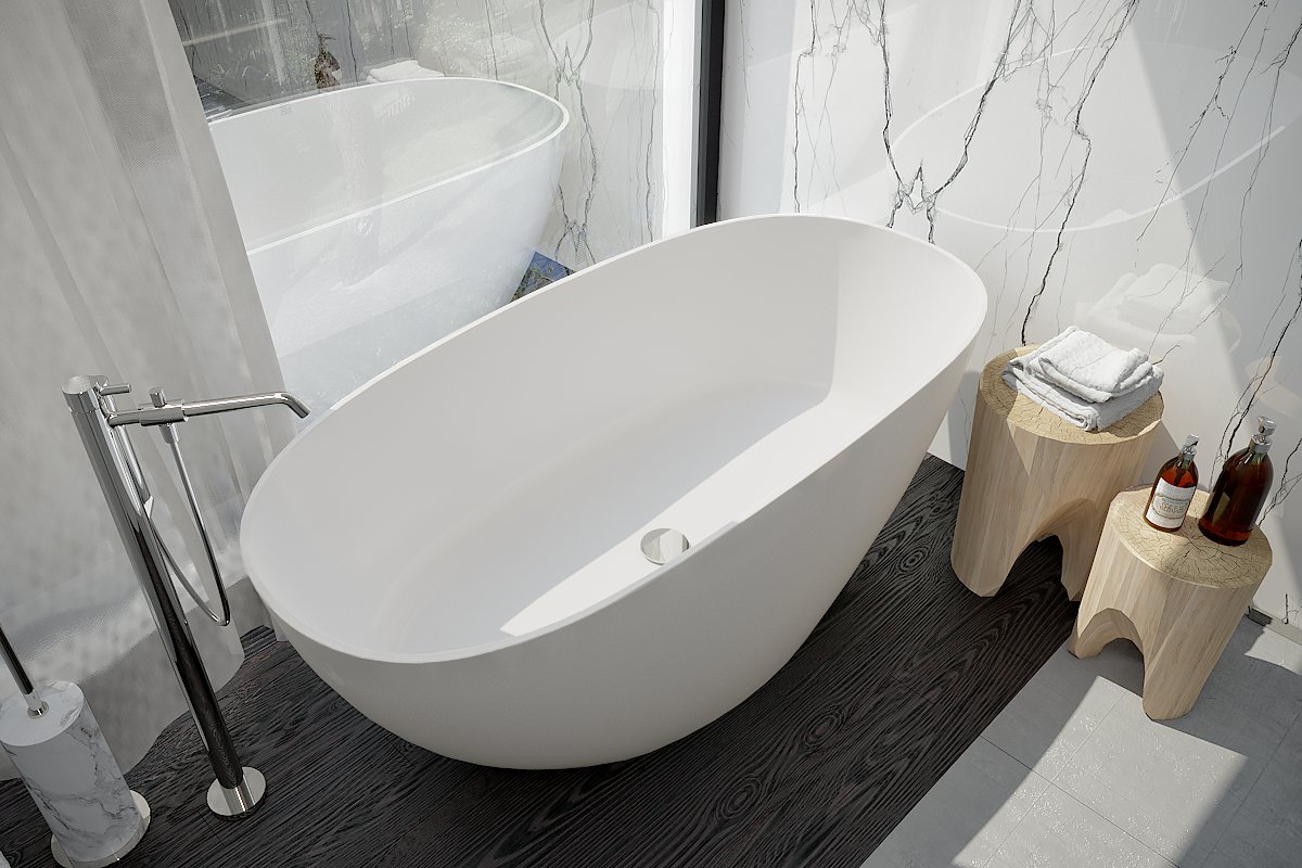 ванна из литьевого мрамора aquastone aqs 1 белый матовый