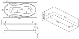 Размер ванны (ДхШхВ) - 180x80x66-73 см