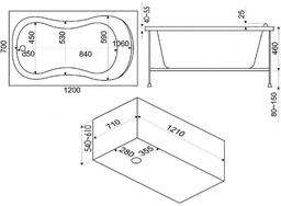 Размер ванны (ДхШхВ) - 120x70x54-61 см